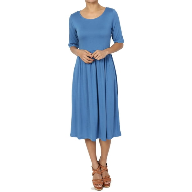 Themogan Themogan Women S 1 2 Short Sleeve Pleated Empire Waist Fit Flare Pocket Dress Walmart Com Walmart Com