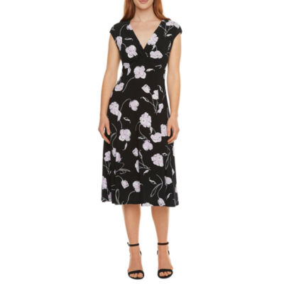 Black Label By Evan Picone Short Sleeve Midi Empire Waist Dress Color Black Combo Jcpenney