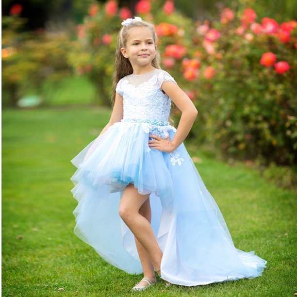 Triumphdress Girls Light Blue White Asymmetric Tulle Train Latoya Flower Girl Dress Walmart Com Walmart Com